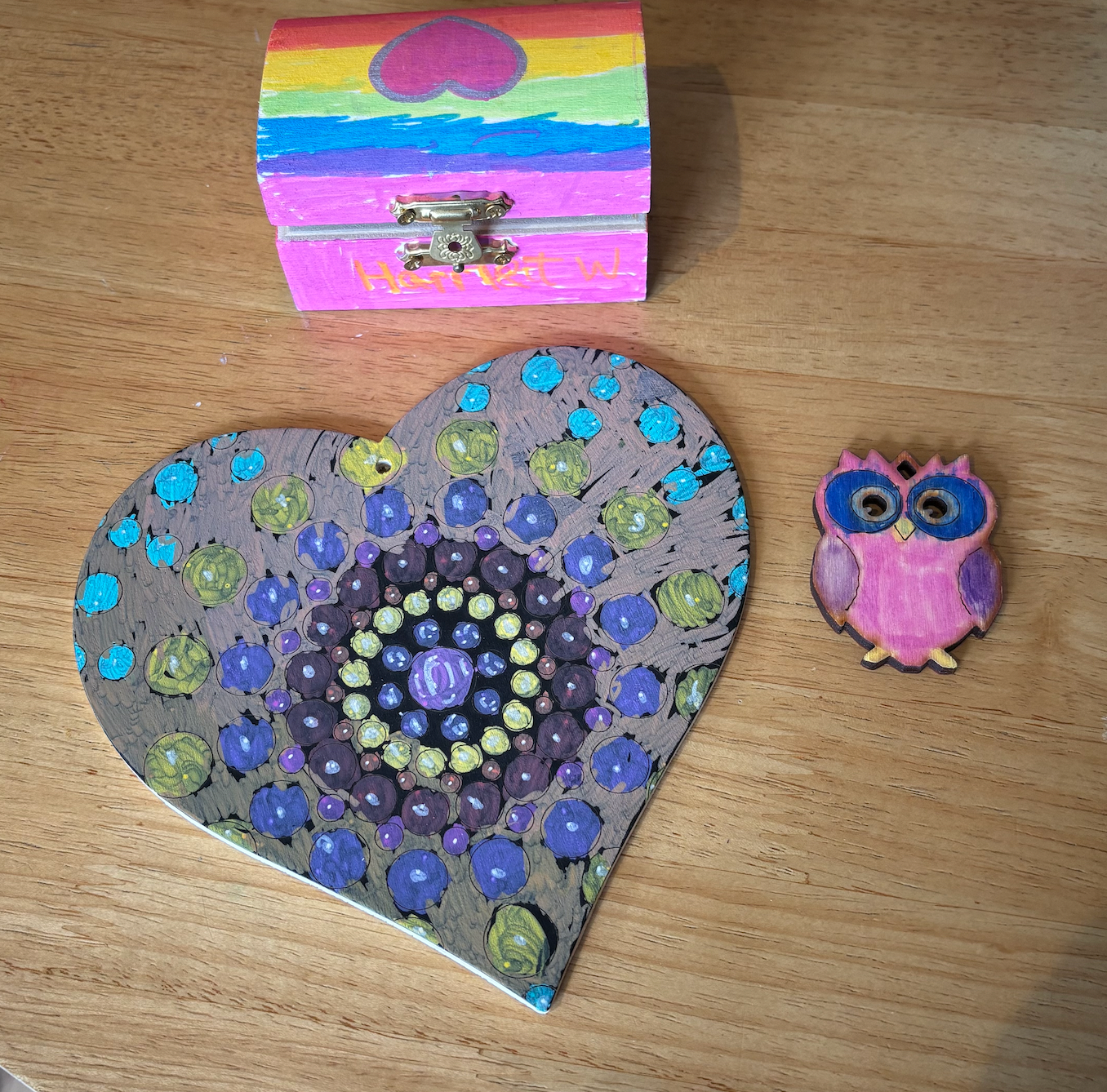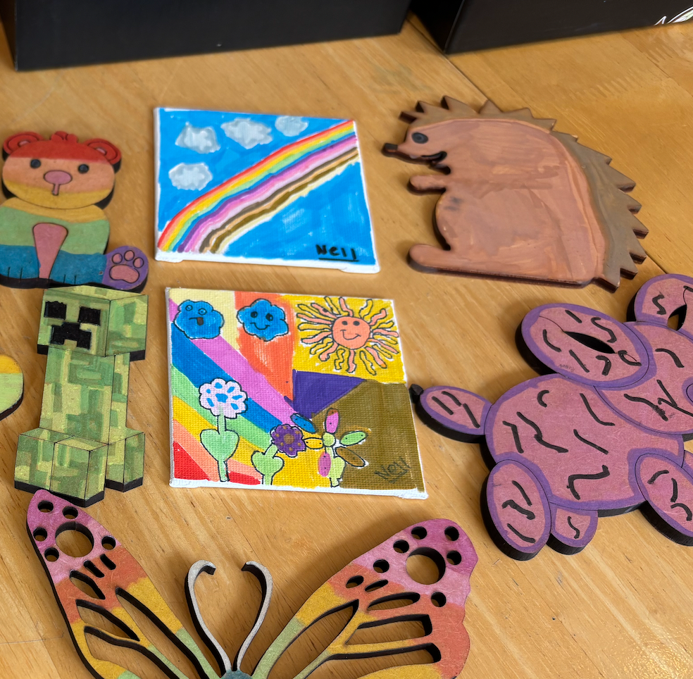 Lovely little craft shop we're you can go and choose from lots of lovely easy to do crafts or if you want to be a bit more adventurous theres slate art ,canvas,various wooden pictures so many to choose from.The owner Gina will guide you on one of her workshops or you can just go freestyle.If you don't want to craft they also have a lovely selection of hot drinks and amazing traybake cakes!!😋we'll definitely be back,the kids told me there going down after school for a sweet treat.